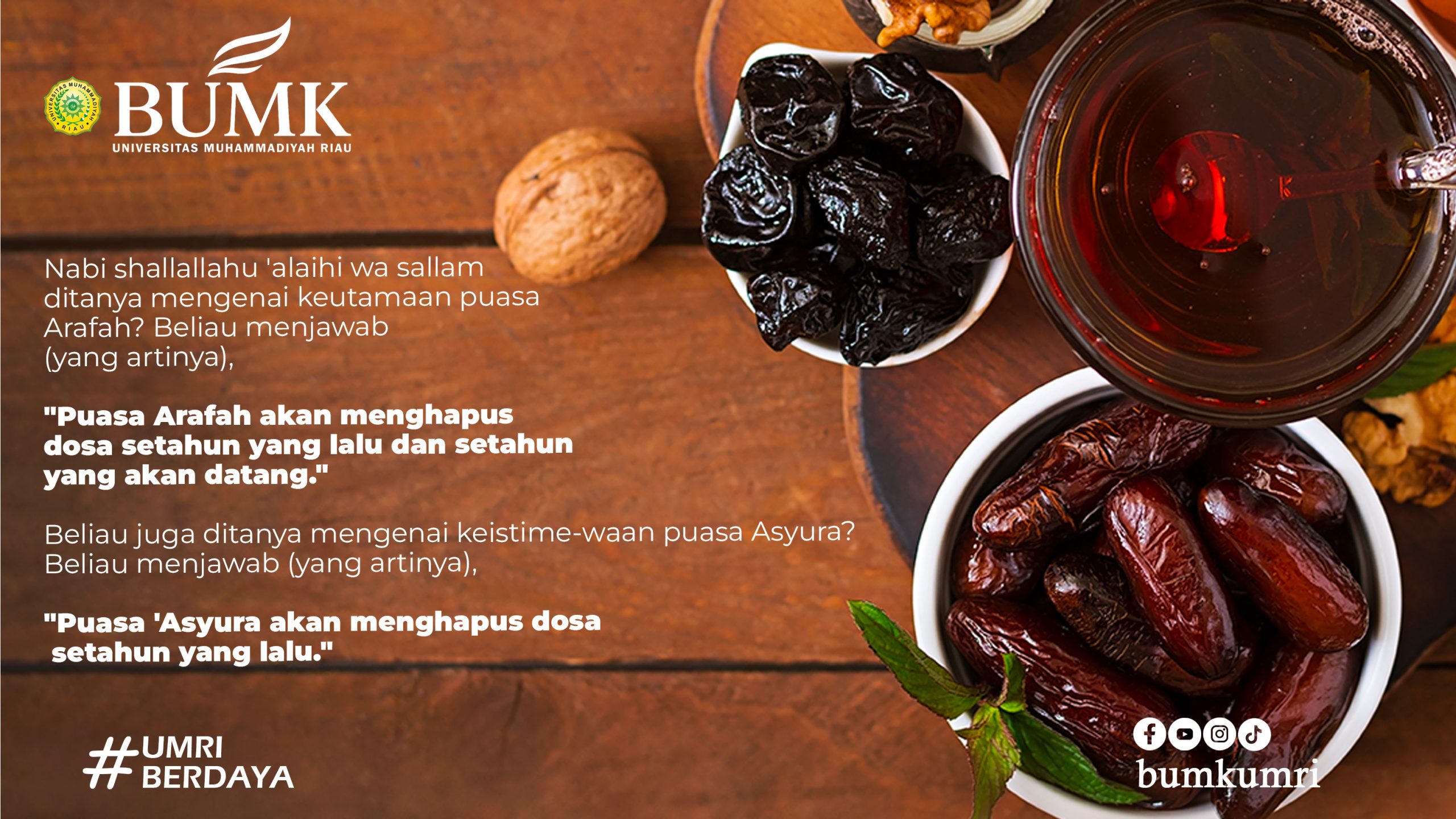 BUMK UMRI mengajak seluruh keluarga besar Universitas Muhammadiyah Riau, serta masyarakat umum, untuk menghidupkan sunnah Rasulullah ๏ทบ dengan berpuasa di hari Asyura. Selain sebagai wujud ketaatan kepada Allah, puasa ini menjadi bentuk syukur atas nikmat yang telah Allah berikan.
